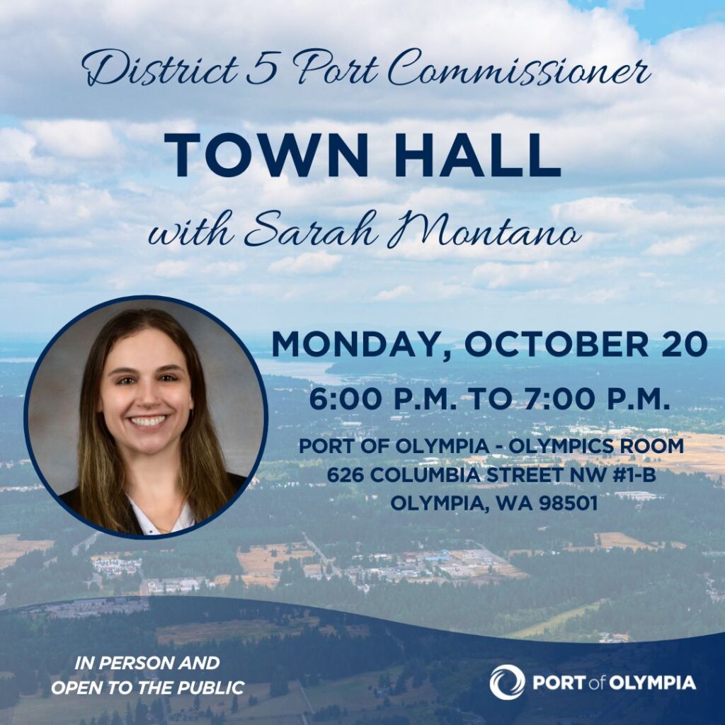 We invite you to join Port of Olympia District 5 Commissioner, Sarah Montano, for an upcoming Town Hall.